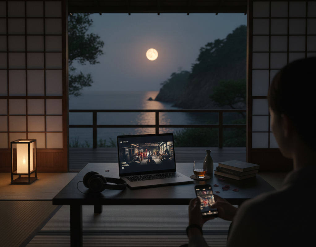 最近の伊豆・熱海の旅館やホテルは、静かな環境でWi-Fiを楽しめる場所が増えました。温泉で火照った体を冷ましながら、お部屋で動画の世界に没入するのは、現代の「お座敷遊び」と言えるかもしれません。